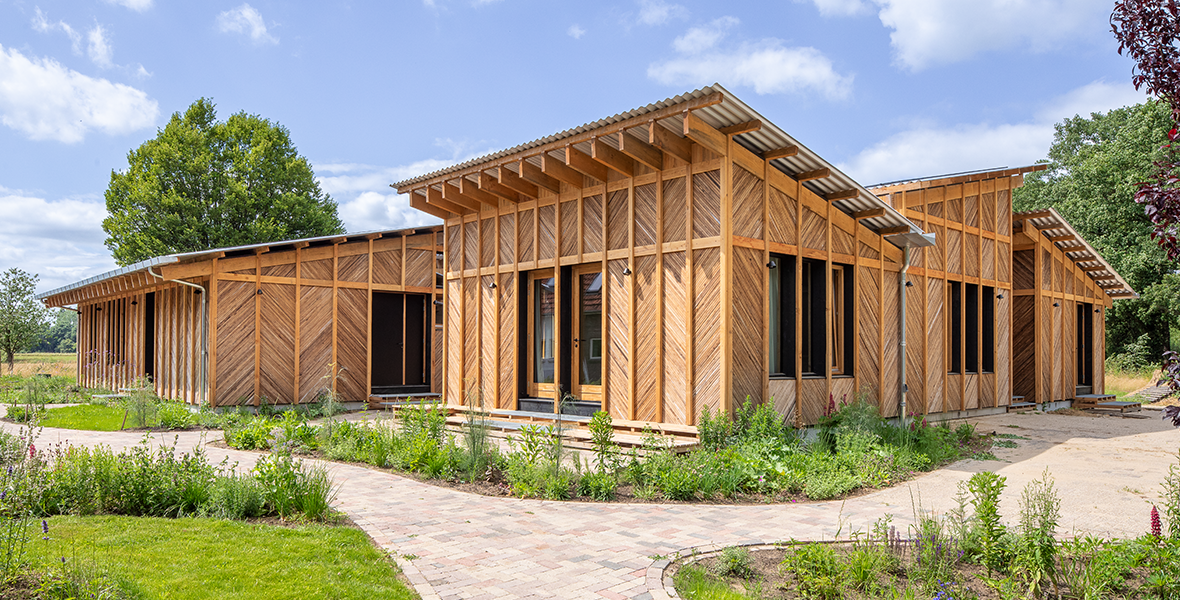 Zo laat The Place to Be zien dat biobased bouwen niet duurder hoeft te zijn dan traditionele bouw. Voor het retraitecentrum in de Achterhoek met twee logiesgebouwen en een eetzaal haalden de ontwerpers alle materialen uit een straal van vijf kilometer: hout van een nabijgelegen landgoed, stro van een lokale boer en de fundering was afkomstig van een oude stal. “Door zelf de materialen te verzamelen en in te kopen, konden we de vierkante meterprijs uitzonderlijk laag houden”, vertelt Van Dijk. “Zodra je een aannemer inschakelt, lopen de kosten enorm op. Dat zien wij ook bij onze eigen woning. Een reparatie van het dak waar voor duizend euro materiaal in gaat, kost in totaal 25 duizend euro: arbeidsloon, verzekeringen, een schaftkeet en ga zo maar door.”