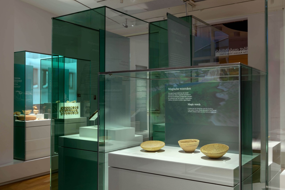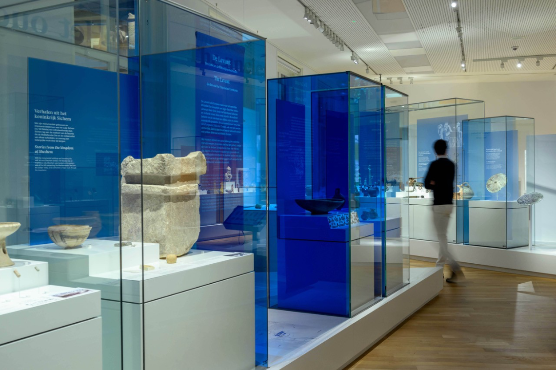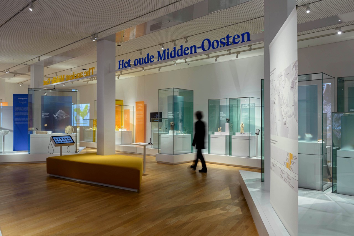“Begin 2024 vroeg het Rijksmuseum van Oudheden mij om een herinrichting van de permanente zaal over het Oude Midden-Oosten. Er was geen budget voor een volledige vernieuwing; alleen enkele ‘cosmetische ingrepen’ waren mogelijk. Het doel was de zaal meer kleur en een gevarieerdere presentatie van de objecten te geven. Tegelijk was er een duidelijke beperking: alleen het middeneiland mocht worden aangepast, de podia langs de wanden moesten blijven staan.”