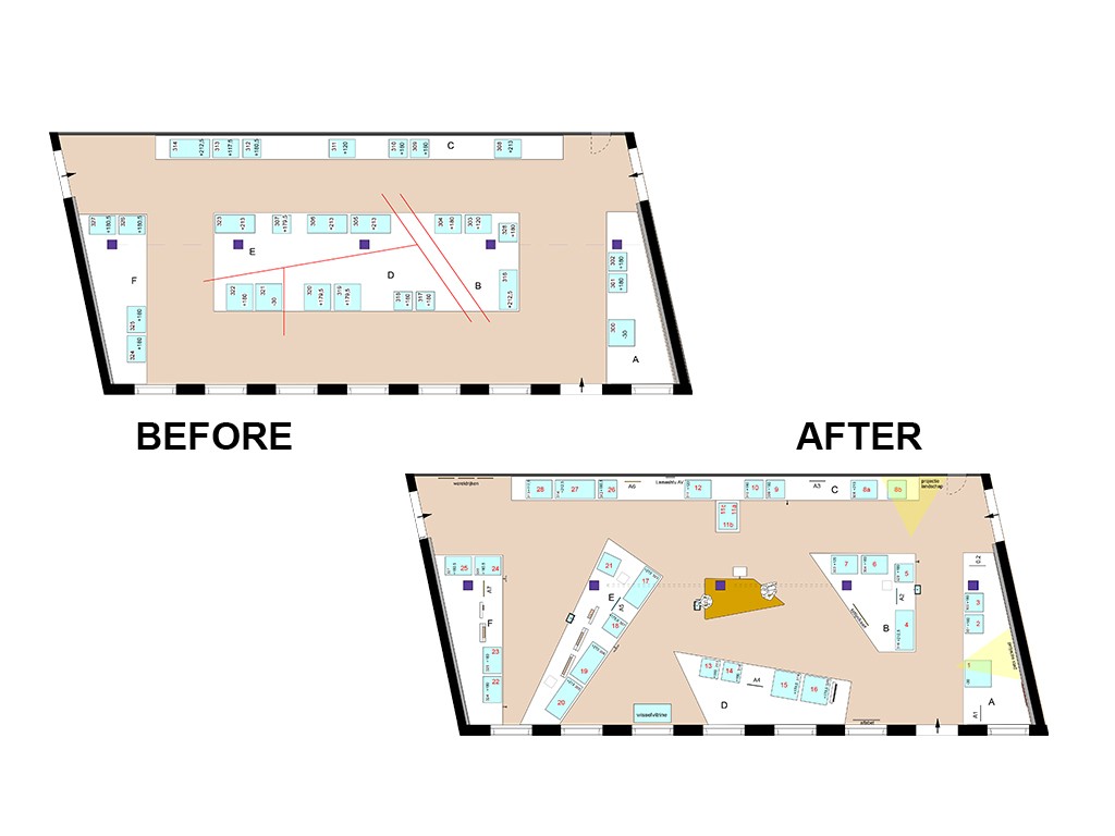 Welke keuzes maakte je bij het werken met het bestaande materiaal en de opzet van de zaal?